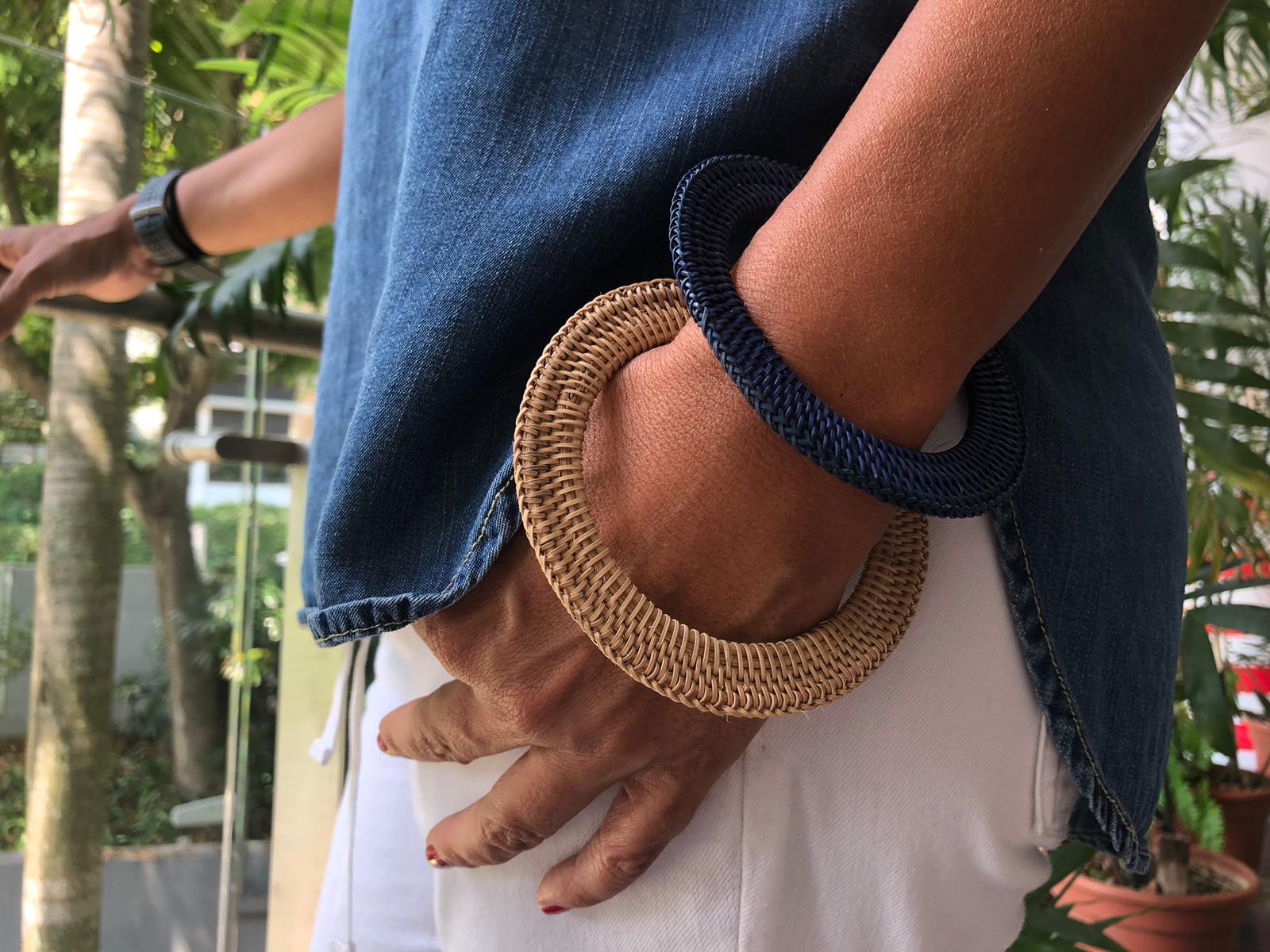 Blue and Brown Rattan Bracelet. Two pieces perfect to combine