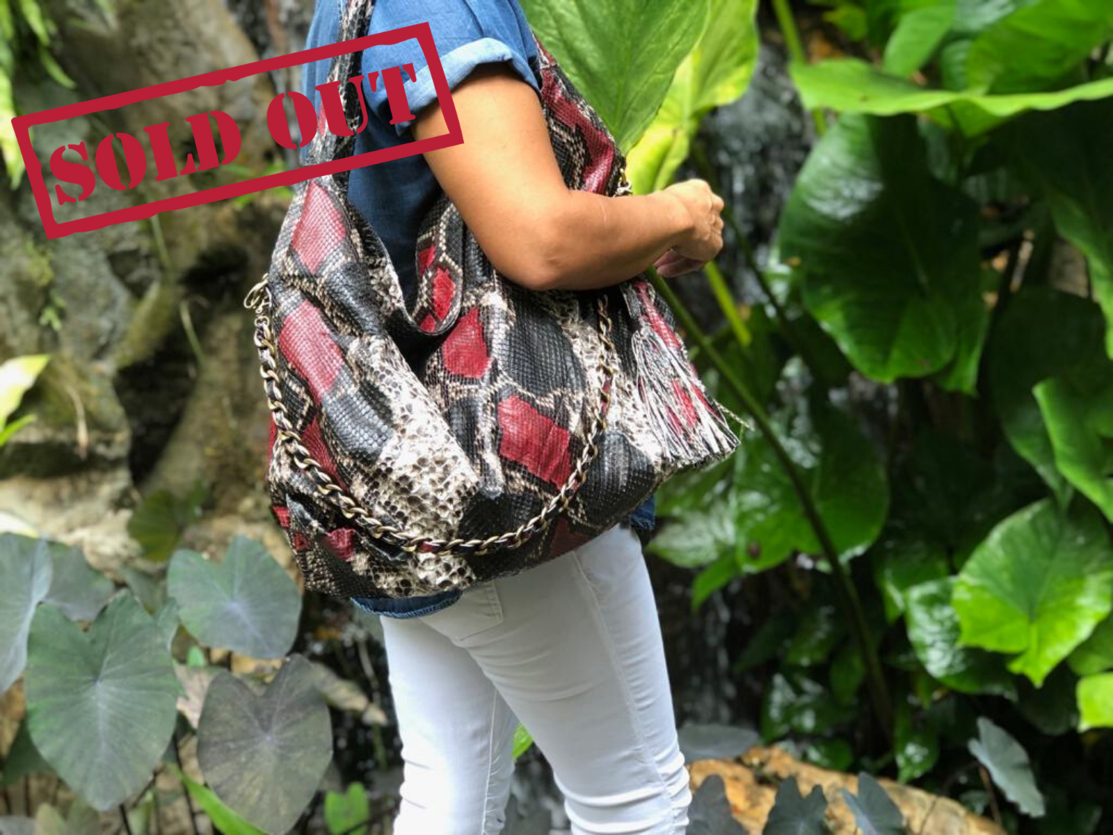 Red and Black Python Leather Bag Soft with chain and Key Bag included