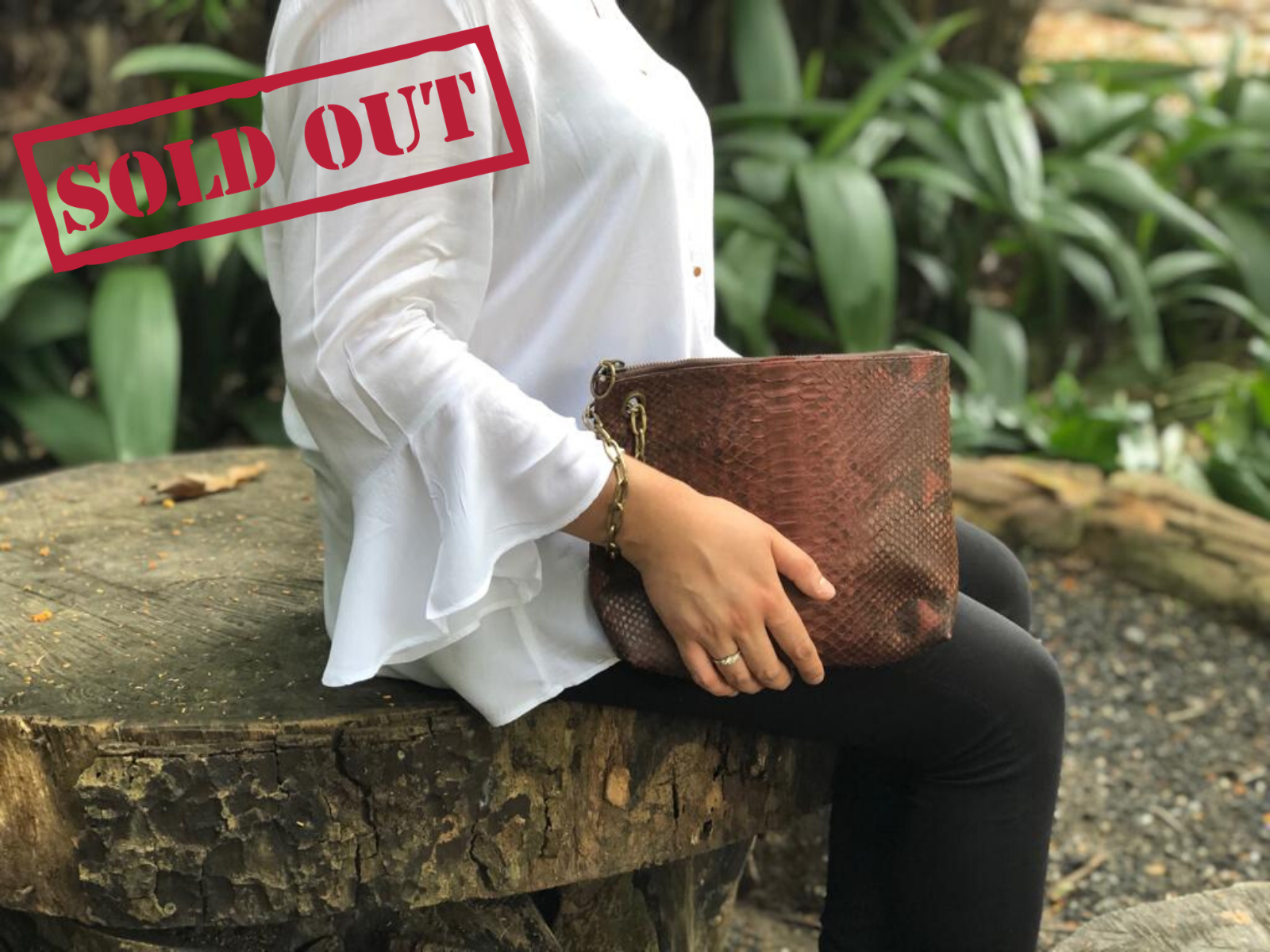 Pouch Bag made by Python Leather with chain in brown