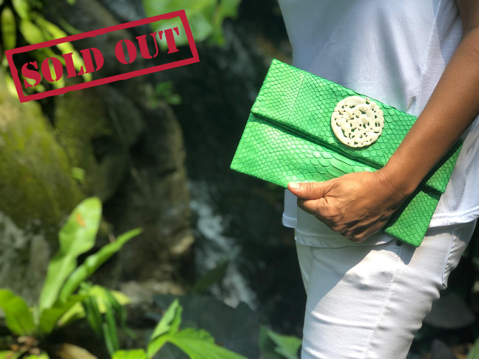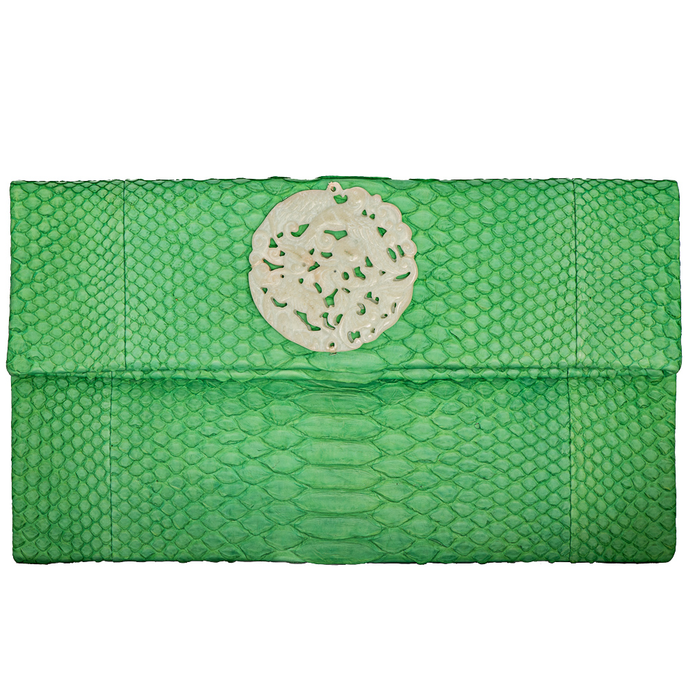 Ocean Green Leather Clutch with White Jade stone